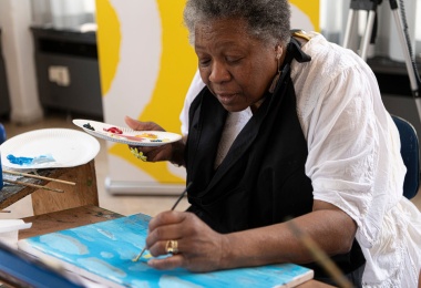 Het was volle bak woensdag 4 februari in het Timmerhuis. Ronald Buijt, de Rotterdamse wethouder Zorg, Ouderen en Jeugdzorg, opende de tentoonstelling Schilder je mee 5 & Kunstcarrousel met werken van Rotterdamse ouderen: ‘Ik vind het een feest om zoveel kleur, lef en verbeeldingskracht bij elkaar te zien’.