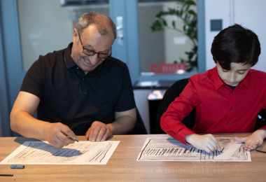 Ouders en kinderen volgen samen de laatste cursusles Hoe word ik kunstenaar